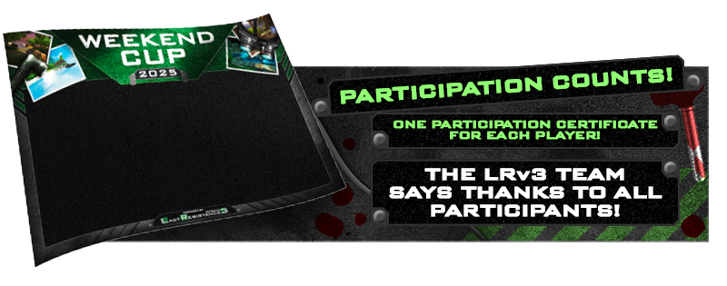 WELCOME TO THE FAR CRYWEEKEND CUP 2025!How time flies! We are very excited to announce that the 10th anniversary of our LRv3 multiplayer add-on is coming up this autumn. And of course we are looking forward to commemorating this milestone together with our fantastic community and with everbody out there who still has a soft spot for the unmatched Far Cry multiplayer experience. We would like to invite everyone to stop by for the celebrations and join us for a whole weekend of pure Far Cry gaming. As with all our annual Weekend Cups before, there will be both an Assault and an FFA competition. For each game mode 3 matches will be played on Saturday and 3 matches on Sunday, so 6 games in total to decide the winner of each tournament. The Far Cry Weekend Cup 2025 will be hosted on the 15th and 16th of November.Play for the victory or just for the fun of it. No matter if you are a longtime player or just a beginner — don't be shy, it is free and everyone is welcome! How to sign up for the Weekend Cup?If you want to play in the Assault Cup or in the FFA Cup, we would like to ask you to sign up in advance so that we can gauge player interest and organise these events accordingly. Please make sure that you can play all the matches in each of these tournaments before you commit. Also keep in mind that you must be present on our TeamSpeak 20 minutes before the competition starts. To sign up for the Assault Cup and the FFA Cup, please head over to our Sign-up page. Sign-up for both tournaments is open until Wednesday, 12th of November, 2025 (22:00 CET). The following players have already signed up: